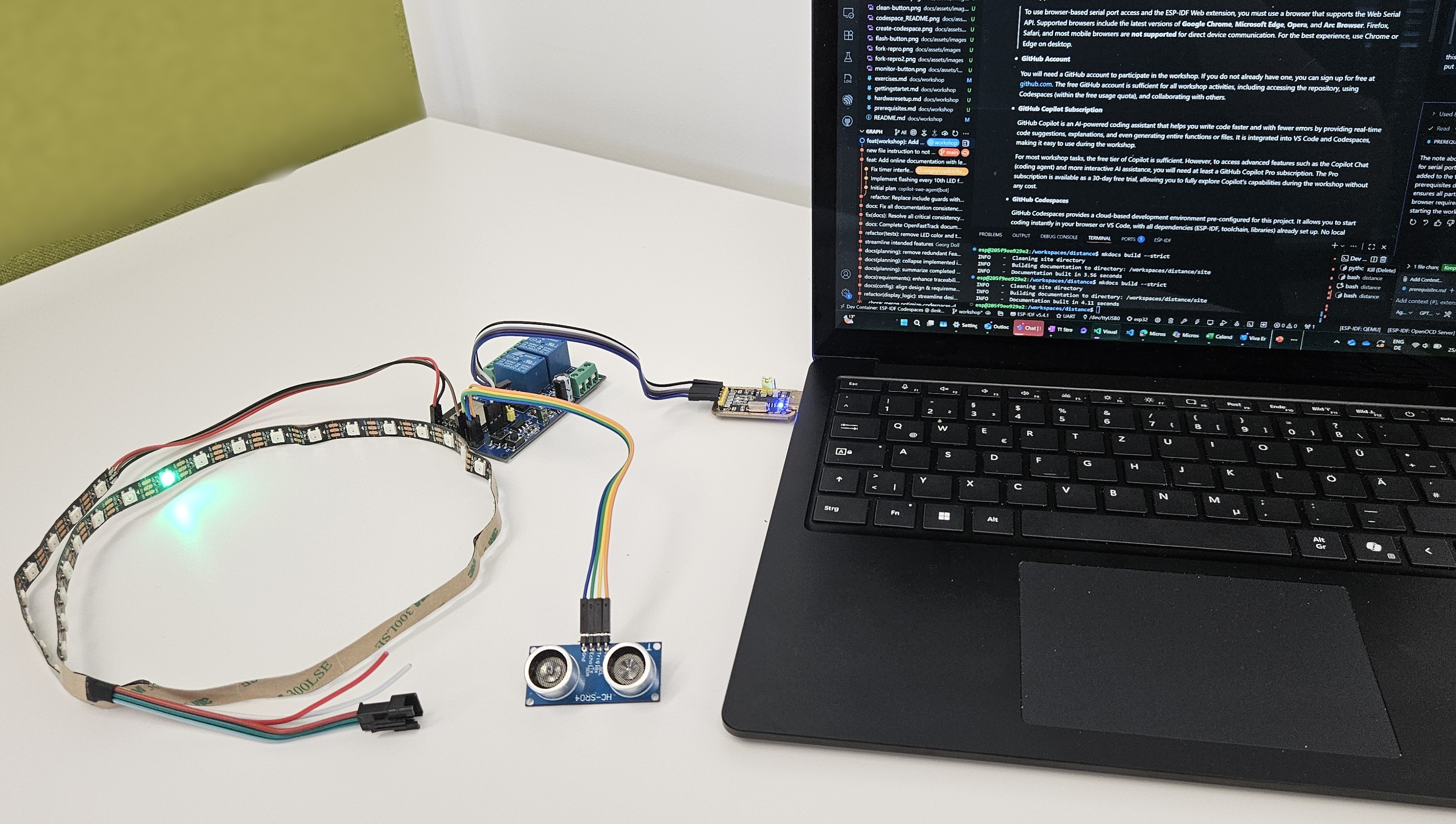 This guide explains the hardware required for the ESP32 Distance Sensor Workshop and how to wire up the components.